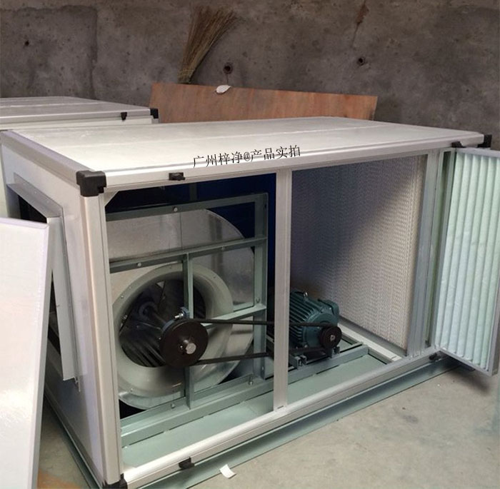 空氣過濾器、單吸式高效后彎傾斜式離心葉輪、消聲箱體、低噪音風(fēng)機(jī)專用電機(jī)組成。新風(fēng)凈化過濾箱具有效率高、噪聲低、靜壓高、結(jié)構(gòu)簡單、外形美觀、安裝維修方便等特點(diǎn)。